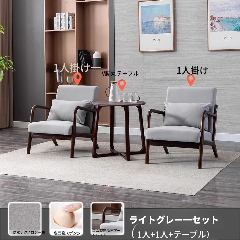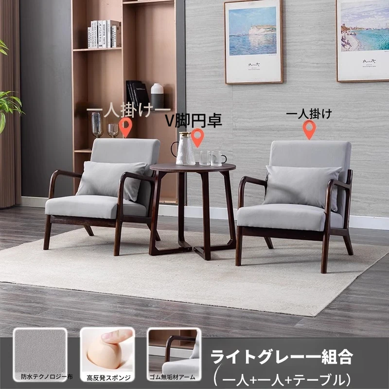 薄灰色*2+丸テーブル 洗わずに使えるテクノロジーファブリック