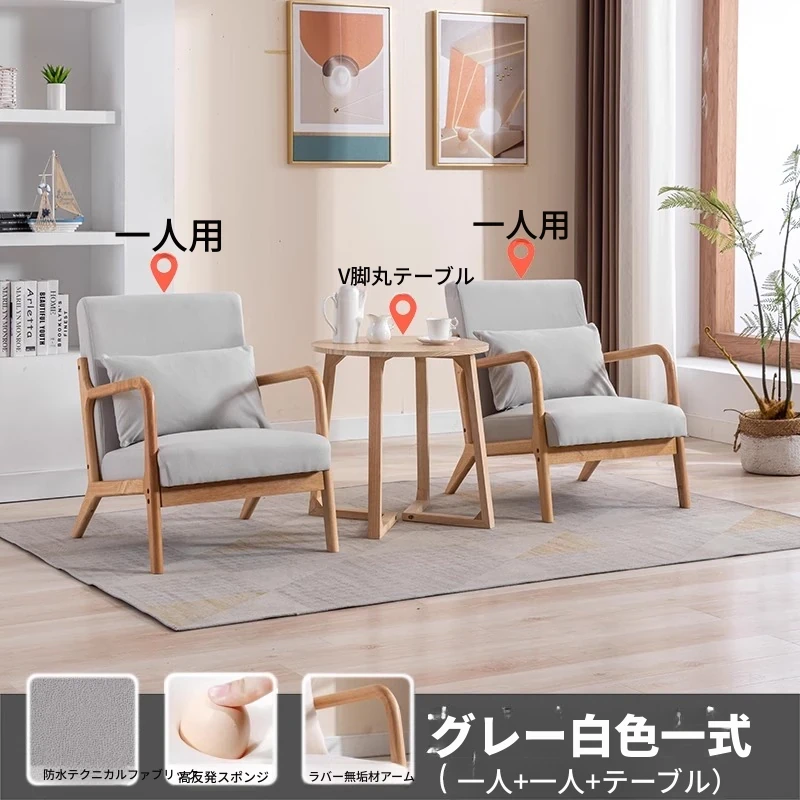 灰白色*2+丸テーブル 洗わずに使えるテクノロジーファブリック