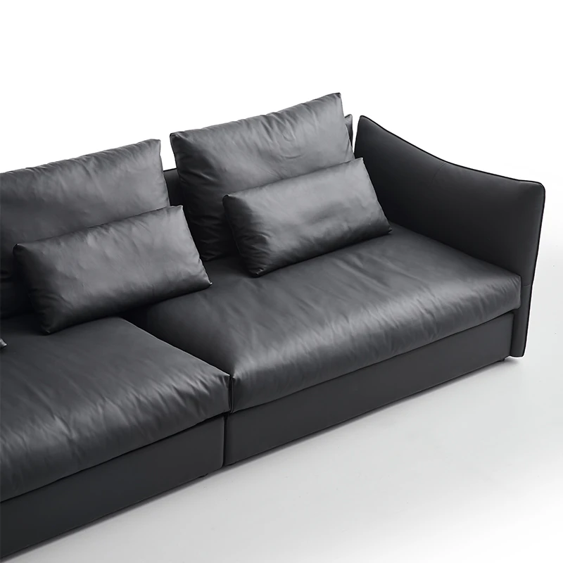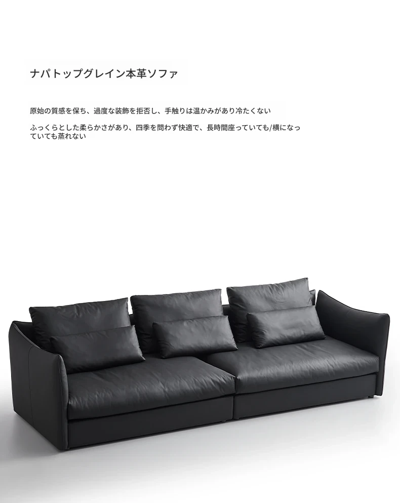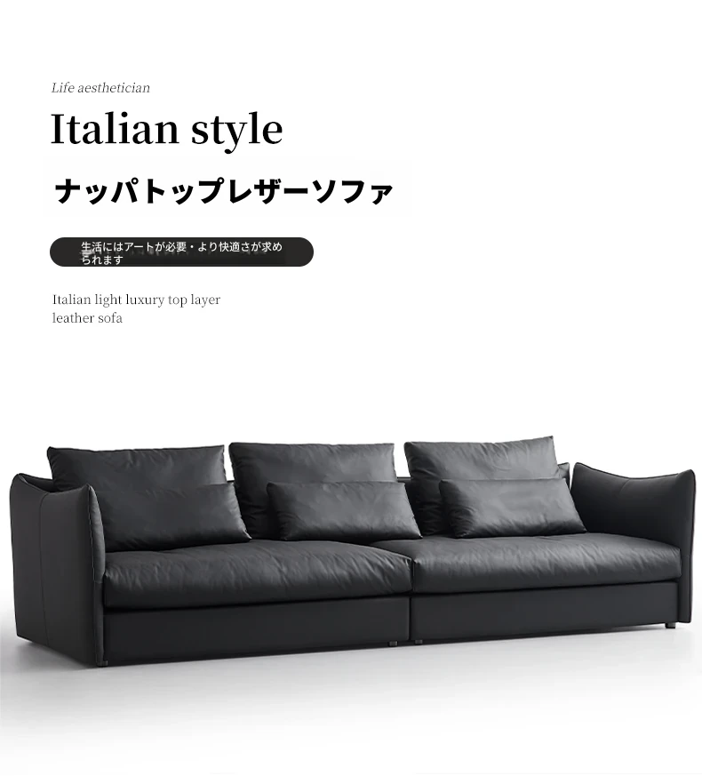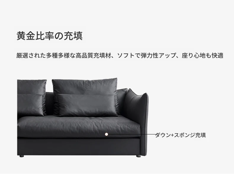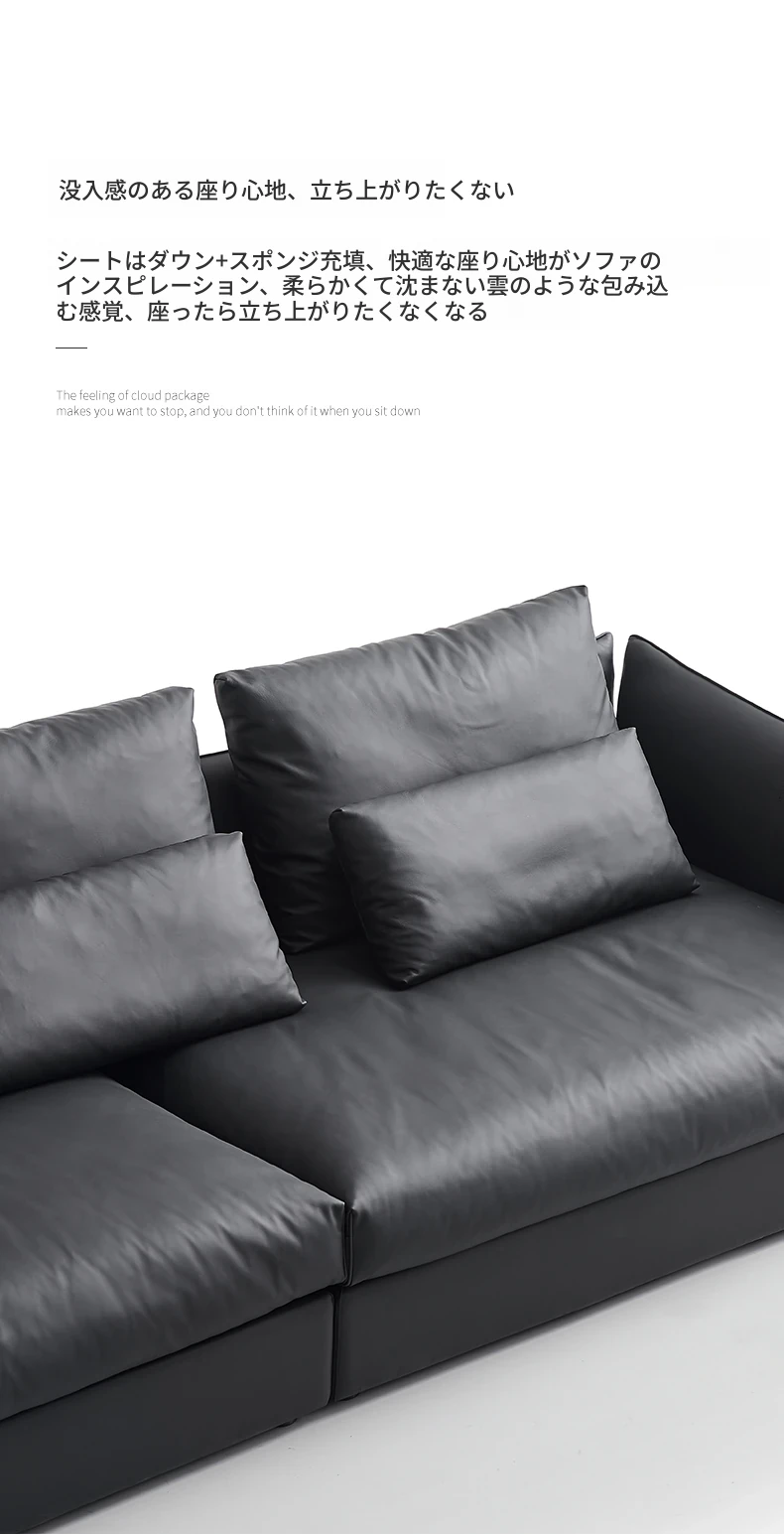 オス湾レザーソファ|小型リビング向け|3~4人用|イタリアンミニマルデザイン|贅沢なダウンパッド入り!心地よいくつろぎを提供します。