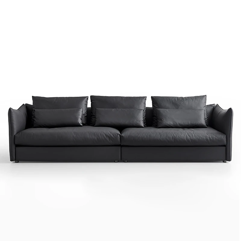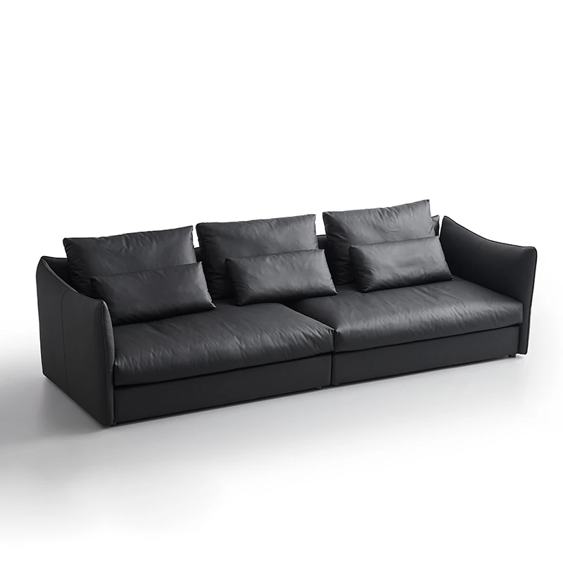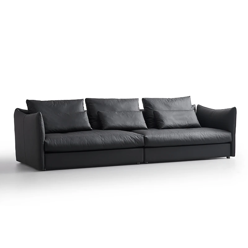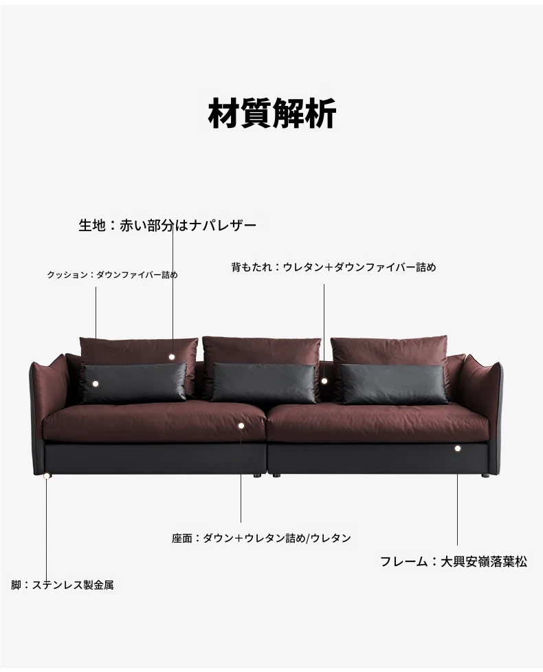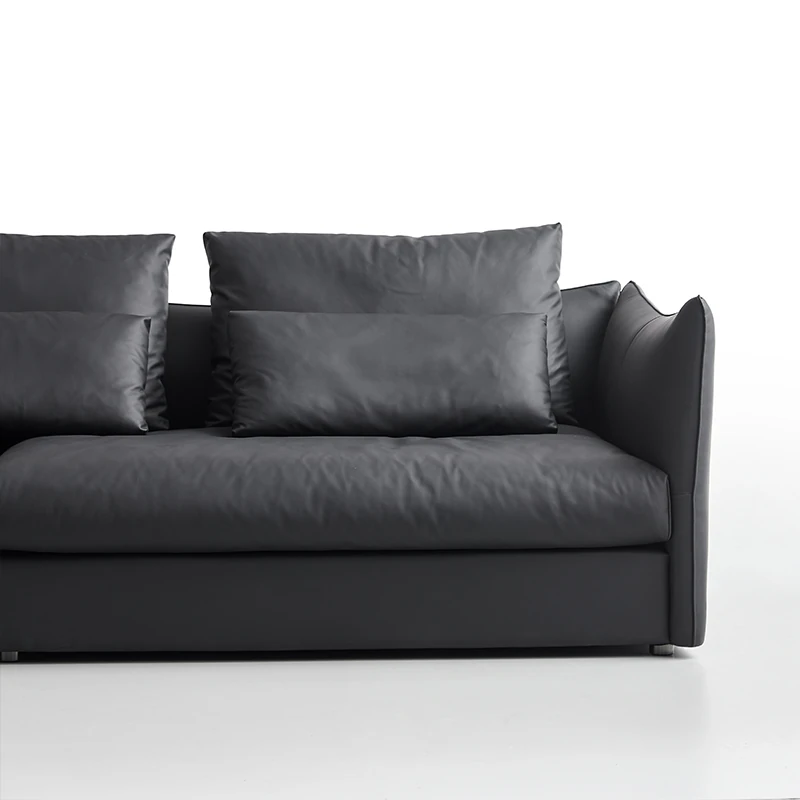 オス湾レザーソファ|小型リビング向け|3~4人用|イタリアンミニマルデザイン|贅沢なダウンパッド入り!心地よいくつろぎを提供します。