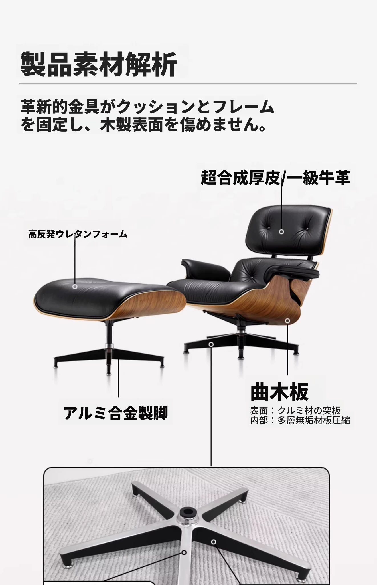スパークデザイン単人用ソファチェア イームズリクライナー 個性的でシンプルなリラックスチェア 上質な本革使用 おしゃれなアートデザイン くつろぎの時間をあなたに!
