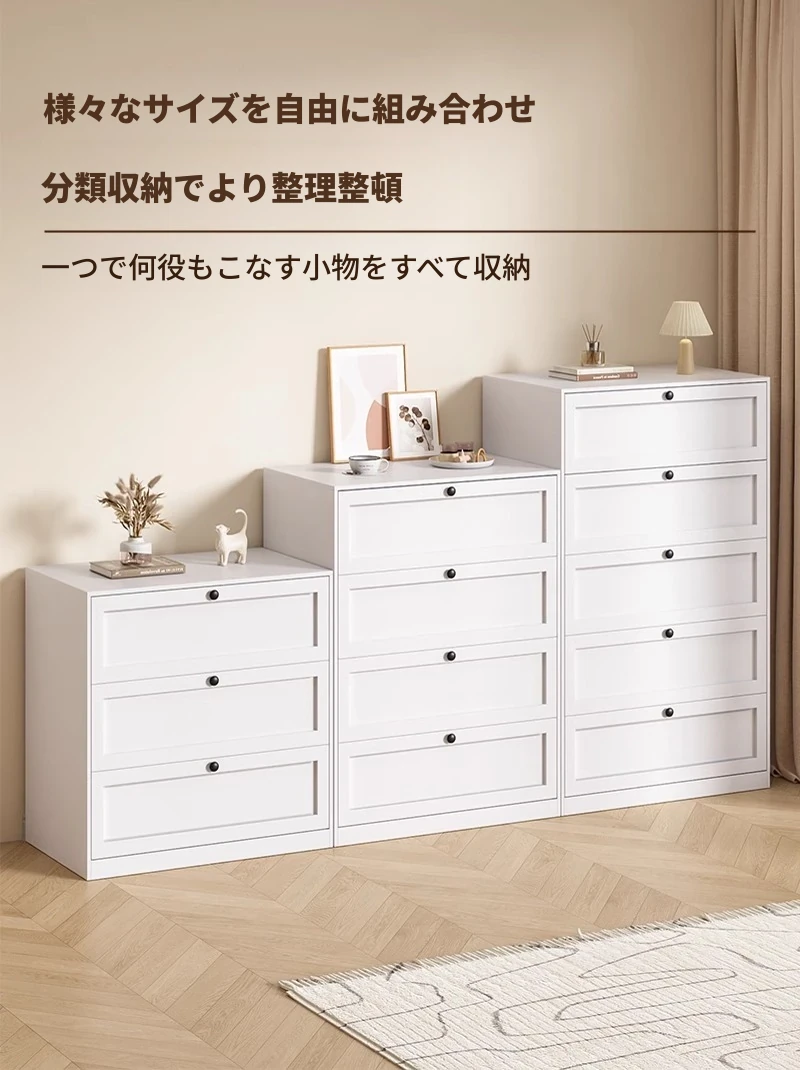 特厚碳鋼⭐クリームホワイトの五斗柜0.6m【大容量-無臭】