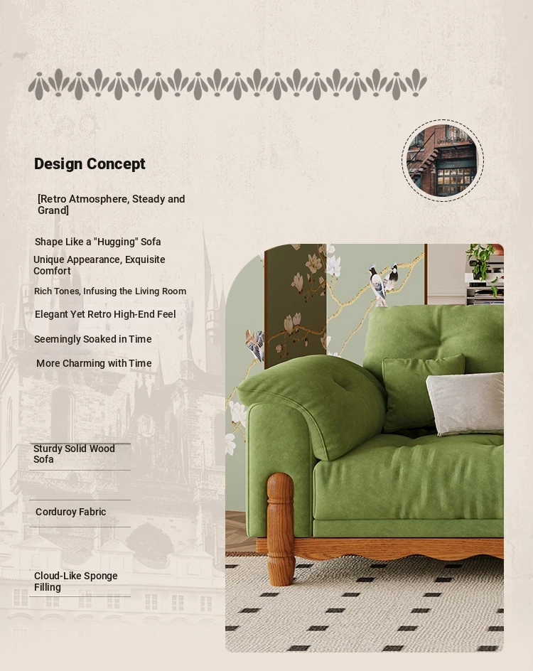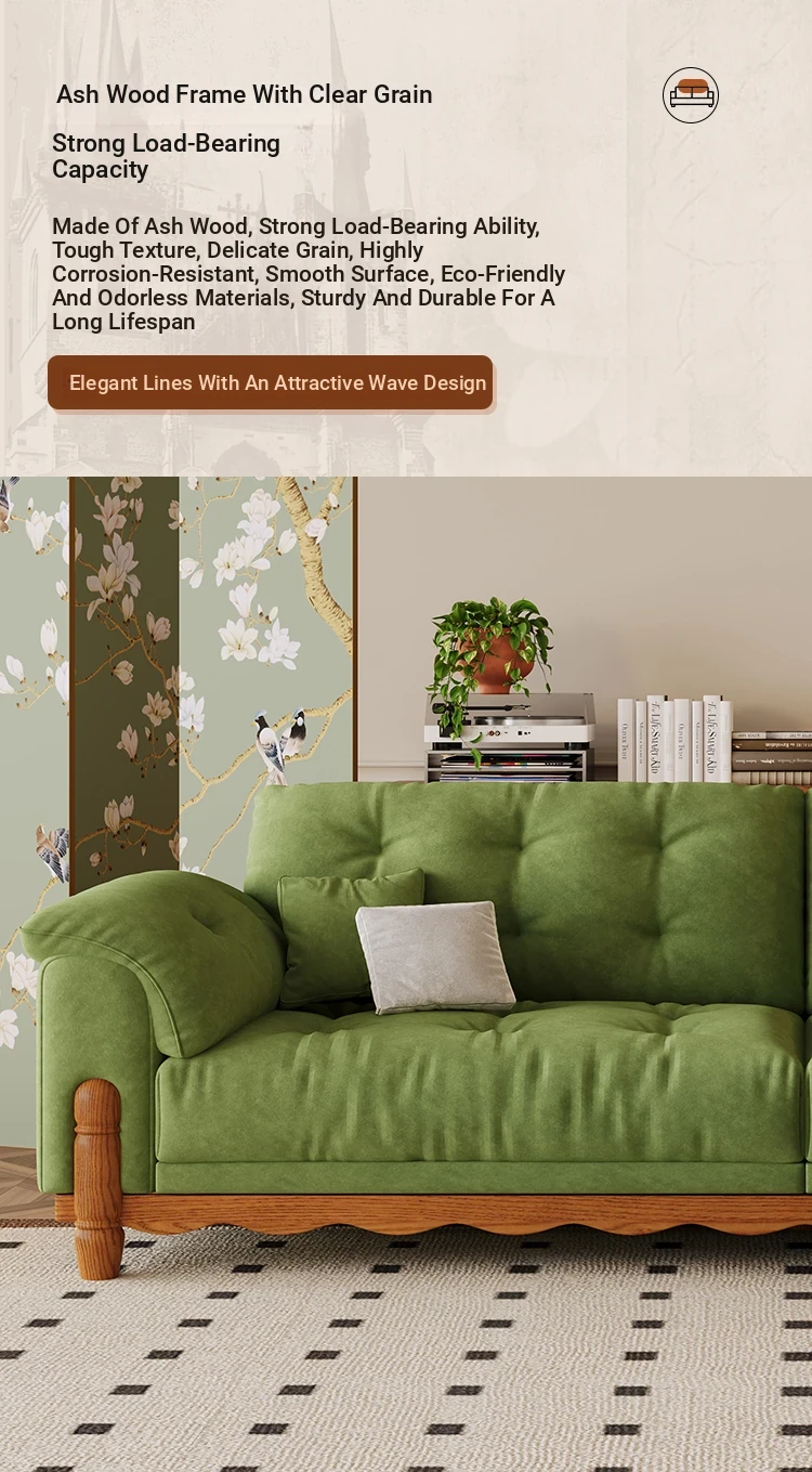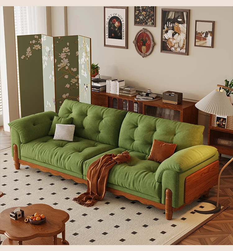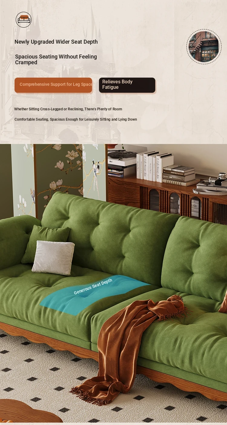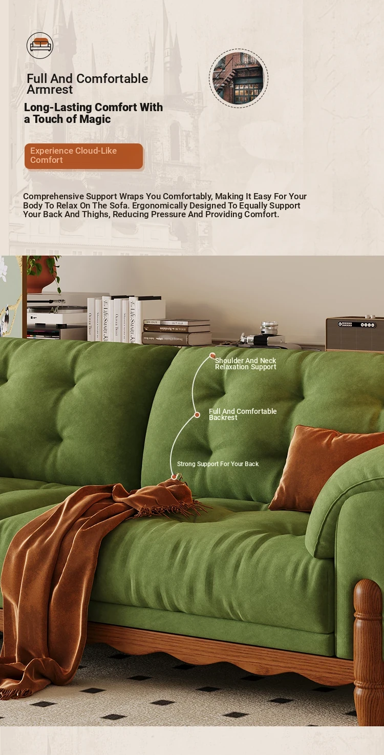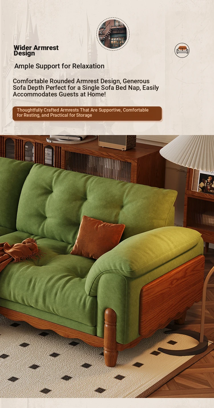 ワパイ・アンティーク風ストレートデザインの小型ソファ|リビングにぴったりなヴィンテージスタイル3人掛け|新作クラウドソファ、天然木フレーム&ファブリック仕様で快適な座り心地!