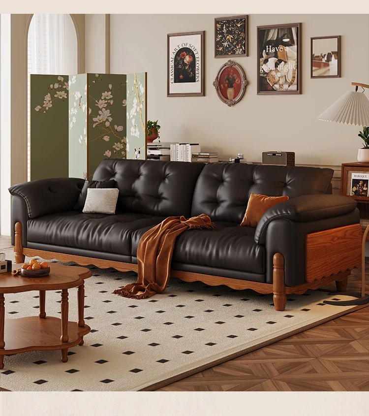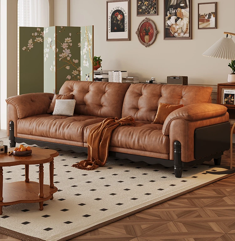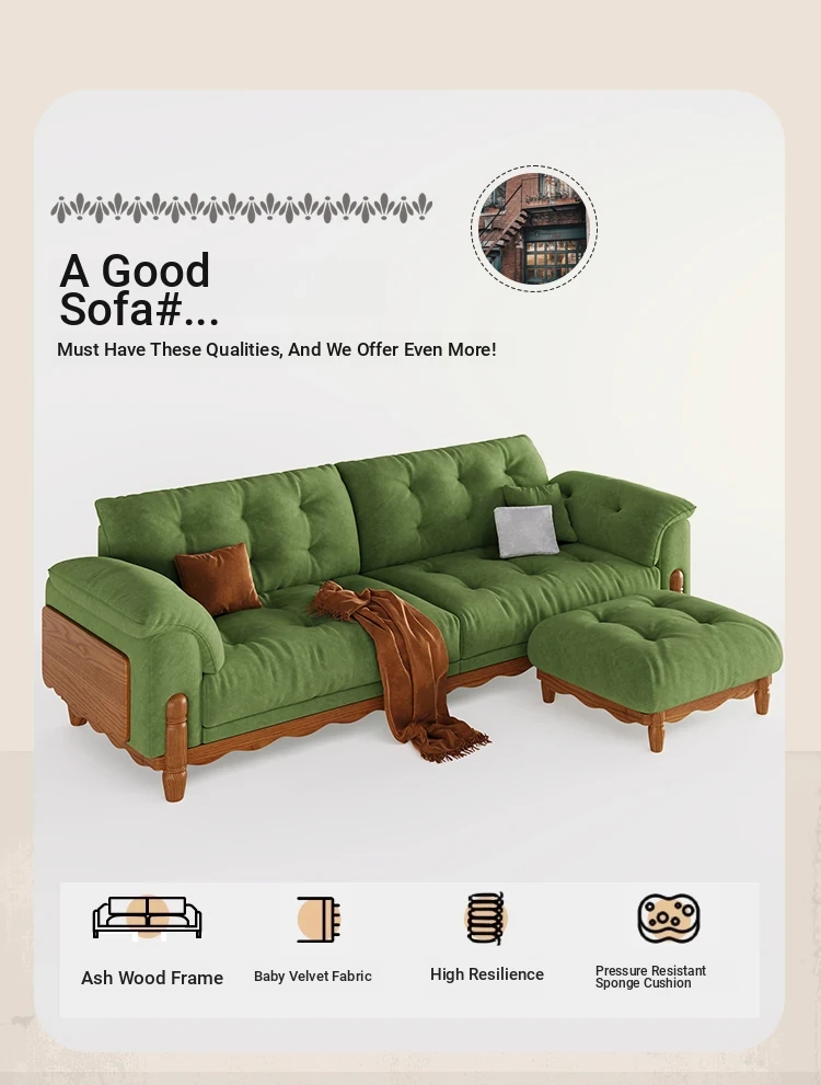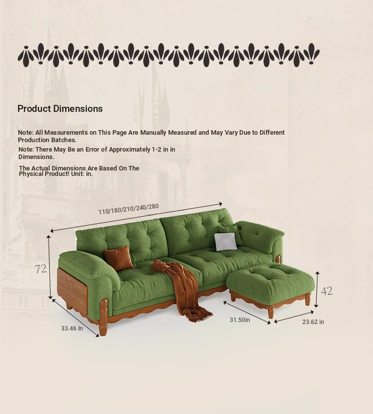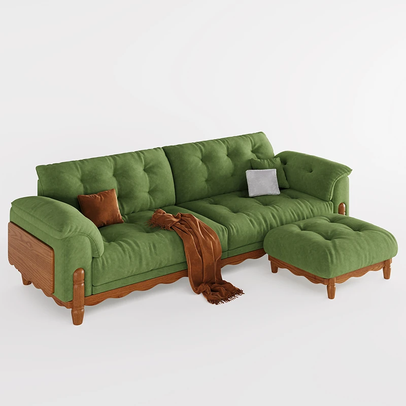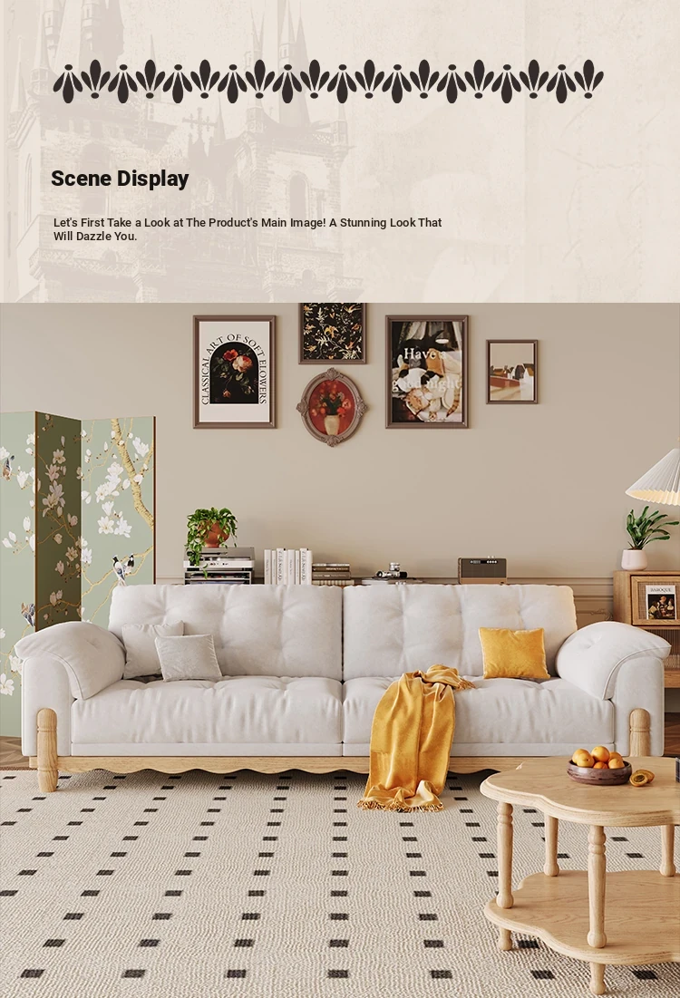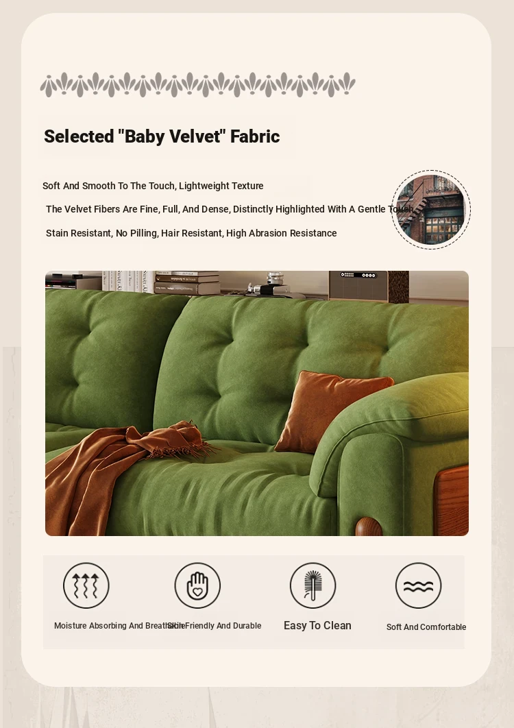 ワパイ・アンティーク風ストレートデザインの小型ソファ|リビングにぴったりなヴィンテージスタイル3人掛け|新作クラウドソファ、天然木フレーム&ファブリック仕様で快適な座り心地!